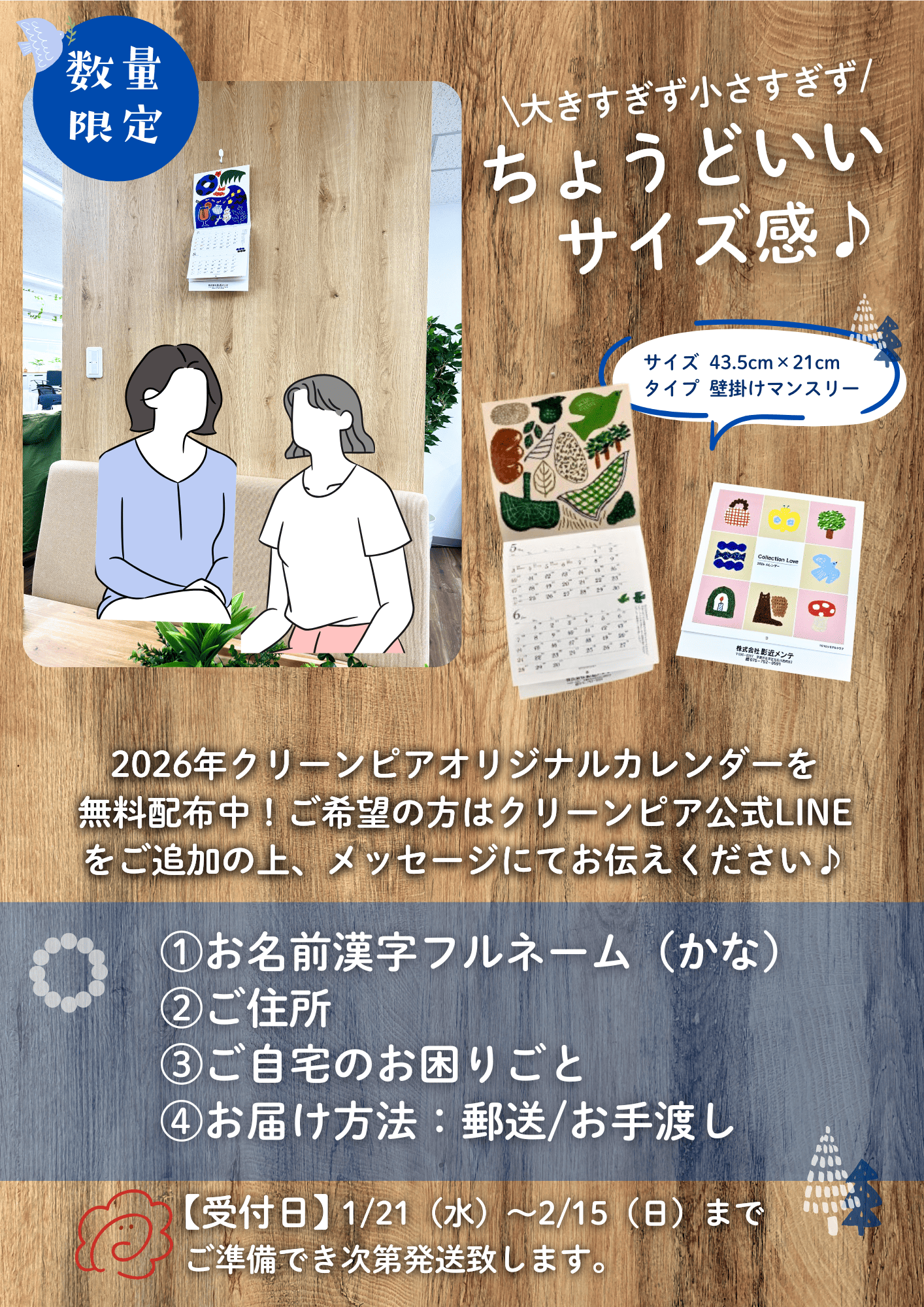 【数量限定】2026年クリーンピアオリジナルカレンダー無料配布中!