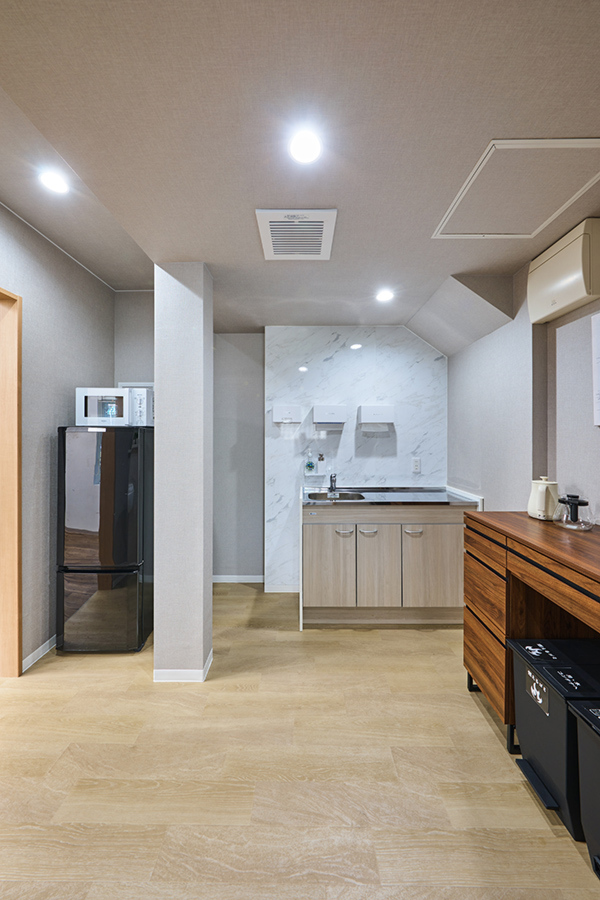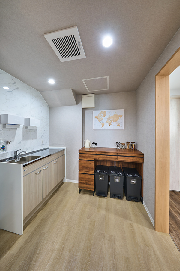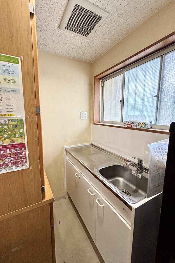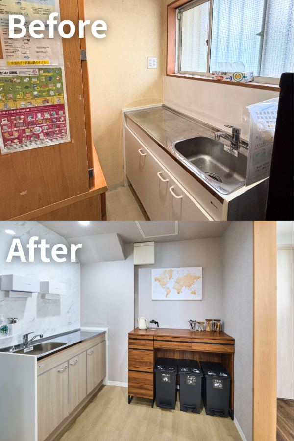 ホーム 施工事例 リニューアル オフィス 1F給湯室 1F給湯室 コーヒー休憩が楽しみに リニューアル|オフィス 画像のみを表示全 4 枚中 1 枚目を表示Next ≫ 正面の水栓がある壁はTakara standardのエマウォール(大理石柄)を採用。 水撥ねがあってもサッとふき取るだけで衛生的!またマグネットがつくので浮かせる収納の取り外しが可能に。状況に応じ好きな場所にマグネット収納を移動できます。 ペーパータオルやキッチンペーパー、ビニール袋をマグネットケースに入れ浮かせて収納しています。 画像のみを表示全 4 枚中 2 枚目を表示≪ Prev|Next ≫ 画像のみを表示全 4 枚中 3 枚目を表示≪ Prev|Next ≫ 給湯室 / Before 一人入るので精一杯だった幅の給湯室。 コーヒーを淹れる時も誰かが淹れ終わるのを待ってから出入りをしていました。 また後ろの食器棚も開ける際も毎回注意が必要な状況でした。画像のみを表示全 4 枚中 4 枚目を表示≪ Prev 一覧へ戻る タイプ別にみる リニューアル すべて 戸建てリフォーム マンションリフォーム オフィス