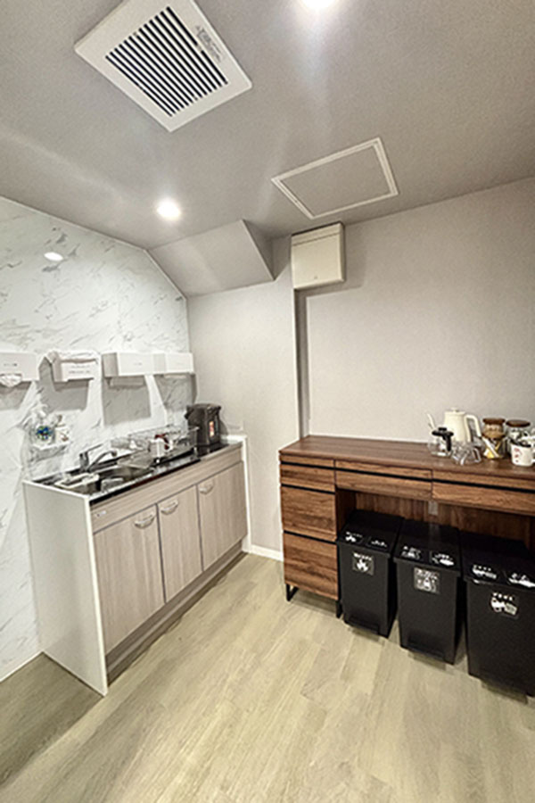 ホーム 施工事例 オフィスリニューアル オフィスリニューアル 給湯室 給湯室 オフィスリニューアル|オフィスリニューアル 給湯室 / Before 一人入るので精一杯だった幅の給湯室。 コーヒーを淹れる時も誰かが淹れ終わるのを待ってから出入りをしていました。 また後ろの食器棚も開ける際も、毎回注意が必要な状況でした。画像のみを表示全 3 枚中 1 枚目を表示Next ≫ 給湯室 / After 給湯室が広くなり、キッチン水栓と食器棚をL字に配置しました。 食器棚も観音開きのタイプから引き出しタイプの食器棚に変え、使用範囲の面積を削減することで広く使えるようになりました。画像のみを表示全 3 枚中 2 枚目を表示≪ Prev|Next ≫ 画像のみを表示全 3 枚中 3 枚目を表示≪ Prev 一覧へ戻る タイプ別にみる オフィスリニューアル すべて 戸建てリフォーム マンションリフォーム オフィスリニューアル